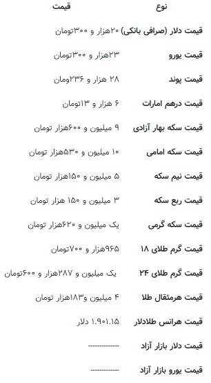 بازار طلا و سکه نیز همانند بازار ارز با ٱفت قیمت مواجه بود به طوری که در نخستین روز هفته سکه به قیمت ۱۱ میلیون و ۳۰ هزار تومان فروخته شد و طلای ۱۸ عیار نیز به نرخ یک میلیون و ۳۸ تومان رسیده بود.