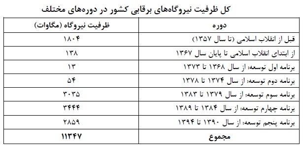 آنگونه که گزارش مرکز پژوهش‌های مجلس نشان می‌دهد برقابي 98,8 درصد از توليد ملي برق تجديدپذير و 13,8 درصد از مجموع الكتريسيته توليدي در ايران را تشكيل مي‌دهد. درحالی که هيدروالكتريسيته حدود 19 درصد از كل انرژي الكتريكي توليدي جهان را پوشش مي‌دهد.